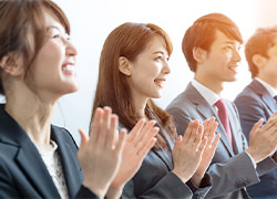 毎月表彰式が実施されます。成果を出した人を評価するという事を大切にしています。